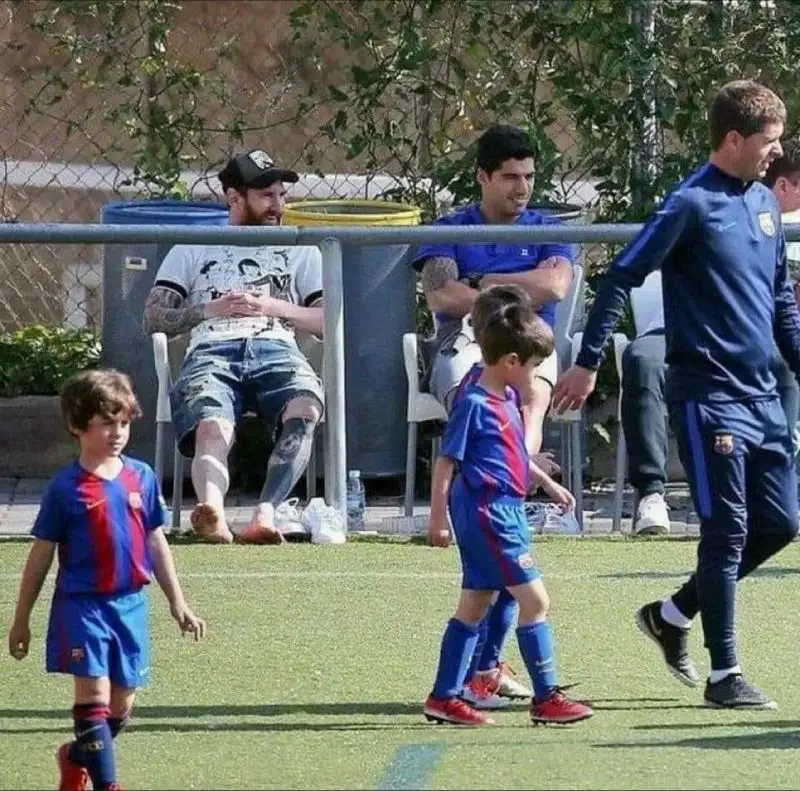 En deze is leuk want dit zijn topvoetballers Messi en Suarez als vaders langs de kant bij hun zoontjes. Zij zitten gewoon relaxed te kijken naar de wedstrijd. Niet schreeuwen, gewoon genieten…